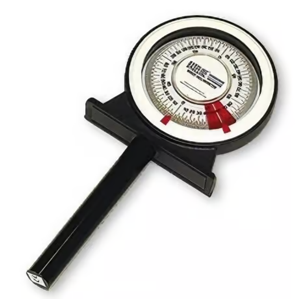 This inclinometer is particularly useful for assessing dorsal and palmar flexion. Its user-friendly design allows for quick and accurate measurements. Simply grasp the handle, set the dial to zero, and move the joint through its range to get a precise reading directly from the dial.