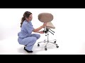 The Spa Luxe professional rolling saddle stool with back support is an ideal, economical addition to your day spa, salon, office and more. This 4-inch cushioned rolling saddle stool can easily accommodate a variety of body types as well as comfort levels. The Spa Luxe features a pneumatic height adjustment, adjustable back support and a tilt function that will allow you to customize this rolling stool for ultimate comfort without fuss. This chic rolling stool chair is also available in a multitude of style choices. Choose from several colors options that complement any office space, salon design or motif. MassageTools' sturdy Spa Luxe saddle chair features a five-caster design that is rated for weights up to 330 pounds.